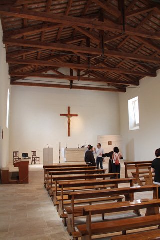 Tra le particolarità dell’intervento di restauro - che per quanto concerne gli aspetti liturgici hanno recepito le indicazioni concordate preliminarmente con l’Arcidiocesi dell’Aquila -, si segnala la riapertura di una delle finestre della chiesa, la prima a destra dell’aula, che nel corso dei secoli era stata arbitrariamente tamponata, ripristinando l’originaria simmetria delle aperture; la rimozione dei due altari laterali e l’adeguamento del presbiterio agli attuali canoni liturgici; un nuovo rivestimento pavimentale, al di sotto del quale è posizionato un impianto di riscaldamento radiante; l’eliminazione della superfetazione rappresentata dal locale centrale termica, sul retro della chiesa, operazione che ha consentito tra l’altro di riaprire un’ulteriore finestra occlusa nella canonica; il parziale abbassamento ed arretramento del muro di separazione tra gli spazi di pertinenza della chiesa e quelli dell’adiacente Museo Nazionale d’Abruzzo, per dare maggior respiro all’ingresso del museo e riportare in primo piano il fianco dell’edificio sacro; il superamento delle barriere architettoniche per l’accesso alla chiesa, con la realizzazione di un percorso dedicato ai disabili motori; la realizzazione di una linea vita in copertura, con accesso diretto dal sottotetto, per facilitare le future attività di ispezione e manutenzione e consentire la loro esecuzione in condizioni di sicurezza.