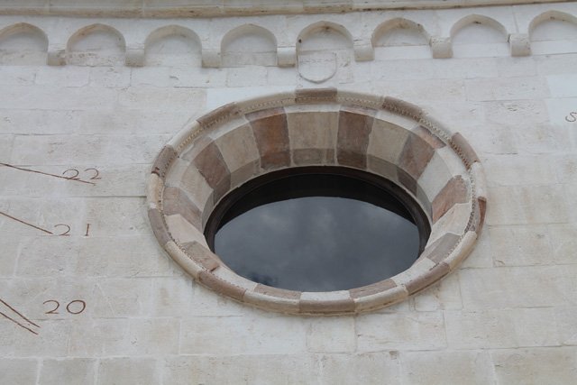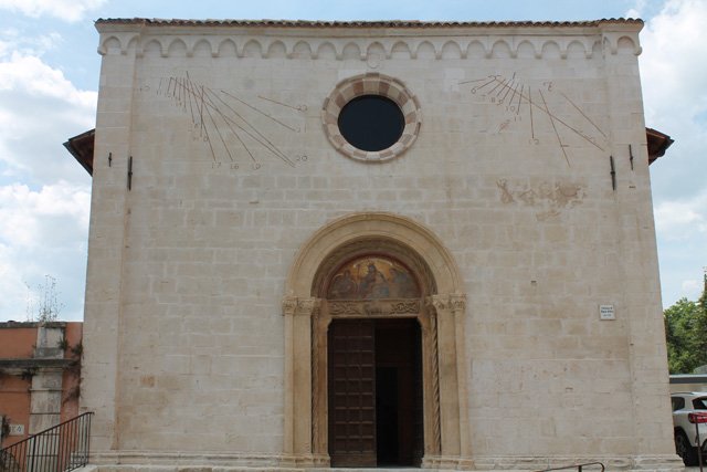 La prima fase di consolidamento e restauro (finanziata per circa 400 mila euro con fondi Cipe) è stata completata a maggio del 2014 ed ha interessato la parte strutturale e l’esterno dell’edificio, facendo tornare visibile uno dei gioielli della città medievale, la bella facciata della Chiesa, riconoscibile proprio dalla meridiana, per il cui restauro sono stati riutilizzati gli stessi elementi recuperati dal crollo, salvo alcune parti mancanti che sono state integrate.