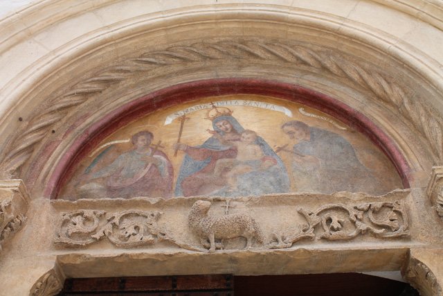 L’intervento di restauro degli apparati decorativi si è invece concentrato sul restauro del portale lapideo e della lunetta dipinta, che versavano in condizioni di evidente degrado. All’interno della lunetta, l’intervento dei restauratori ha consentito di consolidare il supporto materico incoerente e lacunoso, restituendo la leggibilità del palinsesto pittorico, mentre l’intervento sulla pietra del portale ha permesso di rimuovere i depositi di sporco accumulati sulla pietra e di consolidare e reintegrare le parti danneggiate. Un mirato intervento di patinatura finale ha riportato in primo piano, rispetto al resto della facciata, il portale lapideo, sottolineandone l’importanza e la monumentalità rispetto all’insieme.