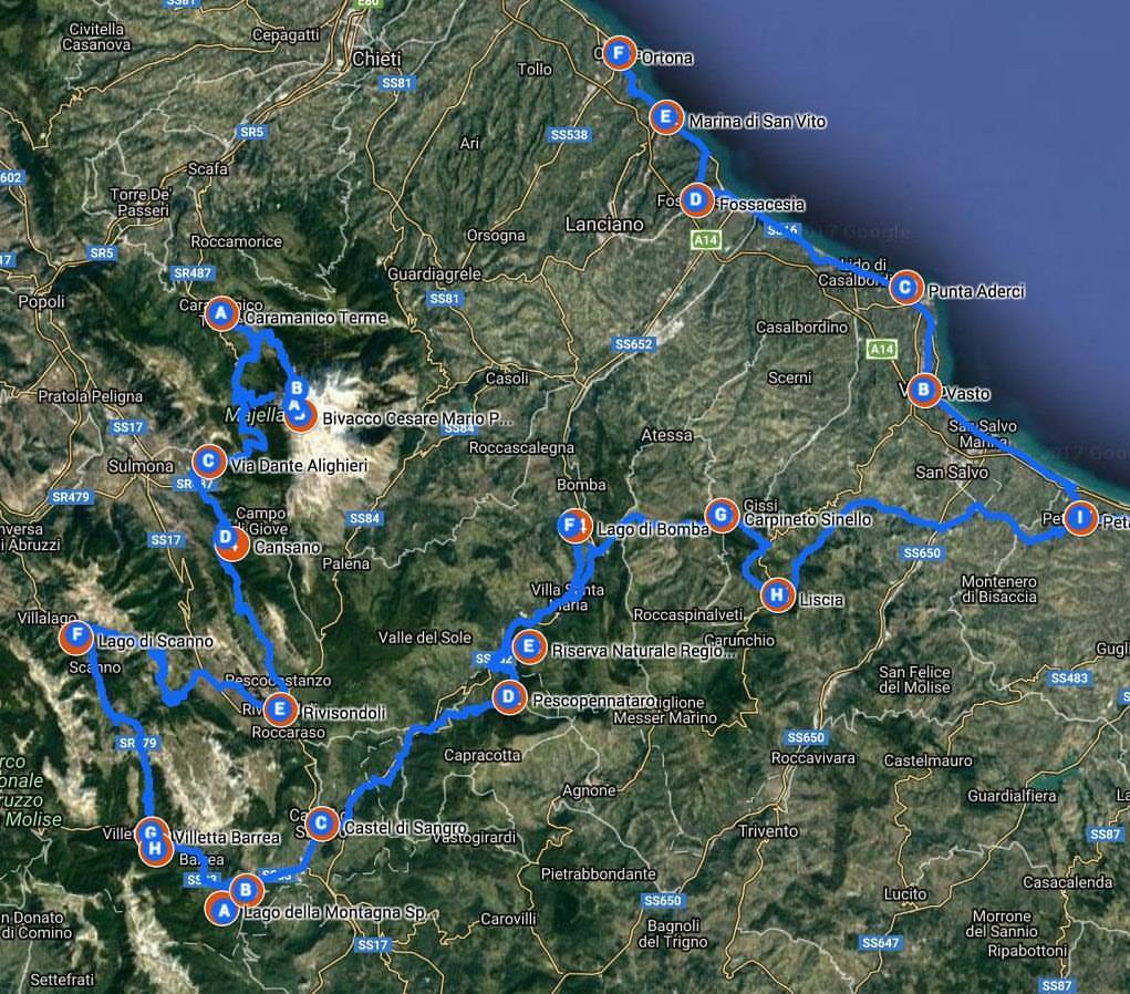 Il 5 agosto scorso è partito da solo, zaino in spalla e tenda al seguito, iniziando rigorosamente a piedi da Caramanico, per poi arrivare a Sant'Eufemio a Majella, Roccacaramanico, il passo San Leonardo, Pacentro, Sulmona, Villetta Barrea, Civitella Alfedena e Barrea. Dalla montagna spaccata di Alfedena, al mare dei trabocchi, raccontando le principali tappe sul popolare social network fotografico Instagram.