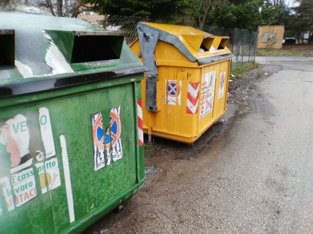 Pile è uno dei pochi quartieri dell'Aquila in cui non è ancora partita la raccolta porta a porta - ma, fa sapere l'azienda, inizierà a breve - e spesso i cassonetti destinati alla raccolta da strada vengono presi d'assalto da furbetti e maleducati che vengono qui a buttare spazzatura non differenziata, cartoni e sovente anche rifiuti ingombranti (elettrodomestici e altro).