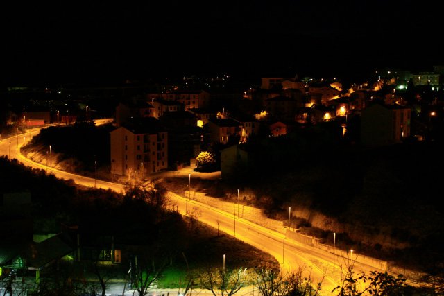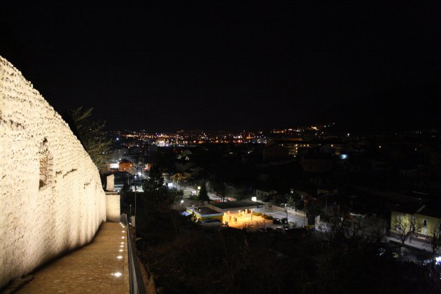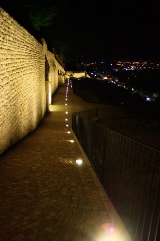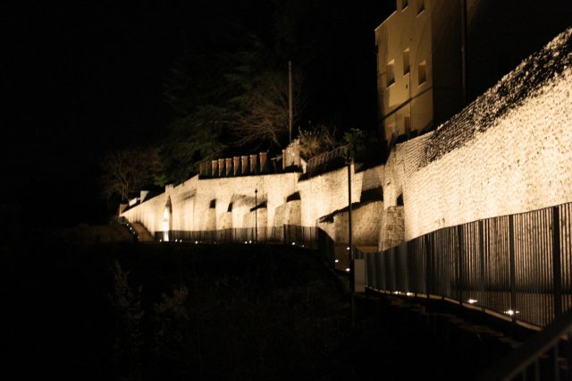 Una passeggiata notturna che riempie gli occhi e l'anima. Il panorama da lassù stupisce a ogni passo, man mano che si sale verso il colmo del camminamento. Di notte, il cielo è fatto delle luci della periferia ovest, mentre i bagliori più vicini del quartiere di Valle Pretara e San Francesco si prospettano di fronte, come vicini di casa curiosi che s'affacciano alla finestra.