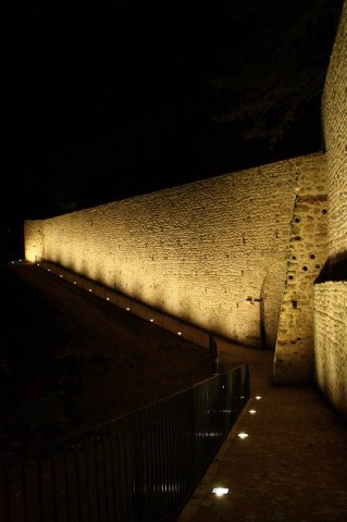 Le mura sono state restaurate in maniera pregevole, ed è bella anche la loro naturale irregolarità. Il saliscendi che creano. L'illuminazione non è da meno: di notte, passeggiare sul camminamento, di fianco ai faretti montati a terra, crea ombre giganti - visibili persino dagli automobilisti su viale della Croce Rossa - sulle mura stesse. Emozionante, poi, notare nel silenzio assoluto una luce accesa, probabilmente di una camera da letto, di una casa al di là, dentro le mura, a loro ridosso.
