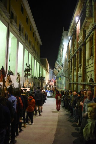 Quest'anno, per la prima volta da allora, il corteo è partito dalla restaurata Basilica di San Bernardino. Poi si è diretto nei meandri del centro come mai era successo negli ultimi anni: dai quattro cantoni, a piazza Palazzo, e poi a Piazza Duomo passando per via Marrelli.