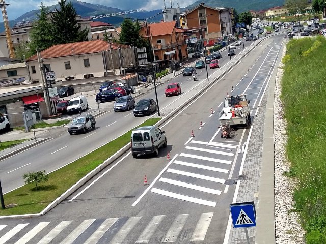 Sono iniziati in mattinata i lavori per la realizzazione della segnaletica orizzontale volti alla creazione di nuovi parcheggi a raso sul trafficatissimo viale Corrado IV, all'Aquila.