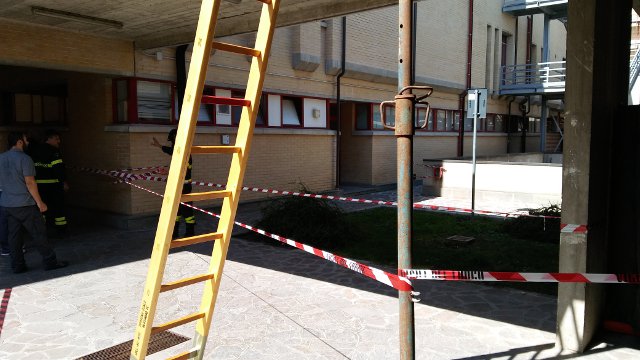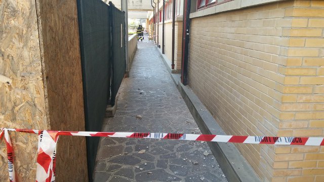 I calcinacci sono piovuti sul marciapiede sottostante - uno dei corridoi pedonali che collegano i vari padiglioni - senza, per fortuna, provocare feriti.