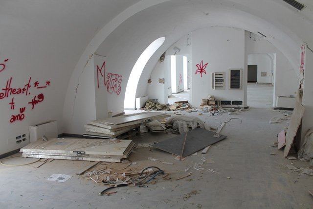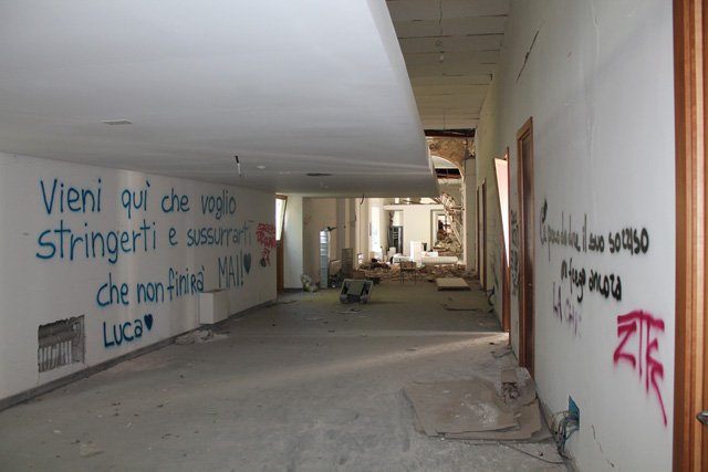 Nel frattempo il fabbricato è diventato terra di nessuno: l'assenza di recinzioni e transenne lo pone alla mercé di chiunque voglia entrare da una delle tante porte e finestre aperte, sfondate se non del tutto divelte.