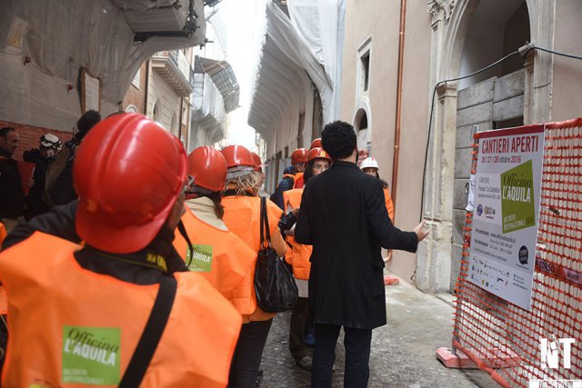 Palazzi e chiese in mostra a L'Aquila in occasione di Cantieri Aperti, il tour guidato negli edifici in ricostruzione del centro storico inserito all'interno del cartellone di Officina L'Aquila, la tre giorni di convegni e dibattiti dedicati ai temi del restauro e della rigenerazione urbana organizzato da Carsa e Ance Abruzzo e in programma dal 26 al 28 ottobre all'Auditorium del Parco.