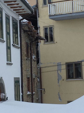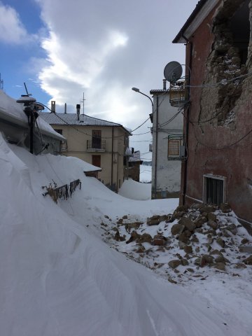 "Dopo la prima violenta scossa una decina di persone che non riuscivano a usare il cellulare sono entrate nel municipio, che ieri era chiuso a causa del maltempo, per usare il telefono - continua la residente - mentre si trovavano all'interno sono stati soropresi dalla seconda scossa, ancora più forte della precedente. Il tetto della sede comunale è crollato e una donna ha riportato lievi ferite in testa. Non è riuscita a lasciare il paese a causa della neve perima delle sei, quando è stata accompagnata ad Aringo (frazione di Montereale, ndr) dall'esercito con i mezzi antineve insieme ad altre persone leggermente ferite".