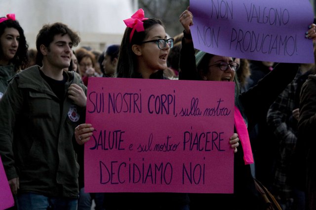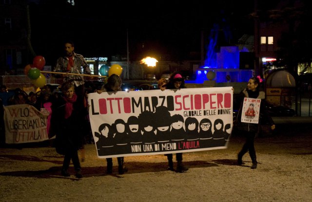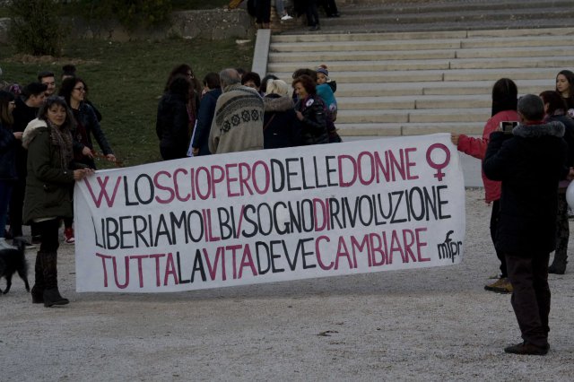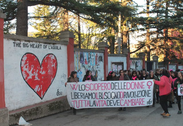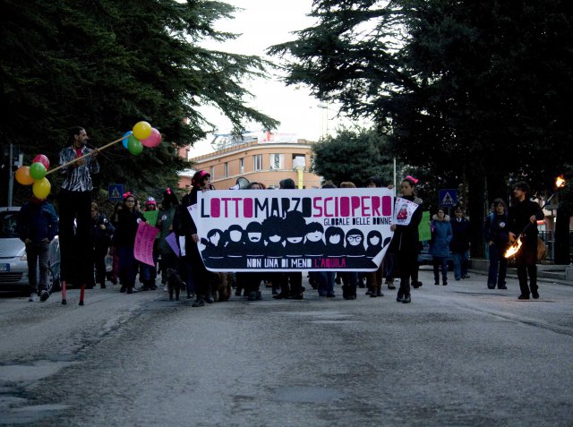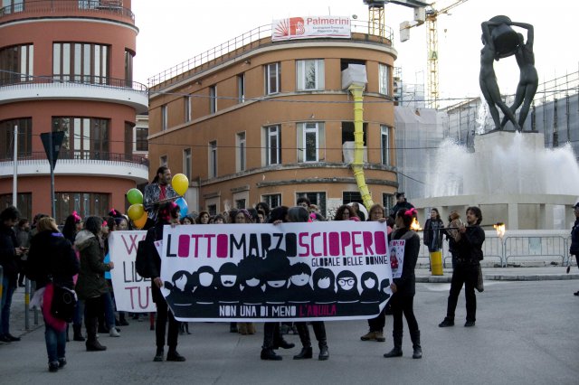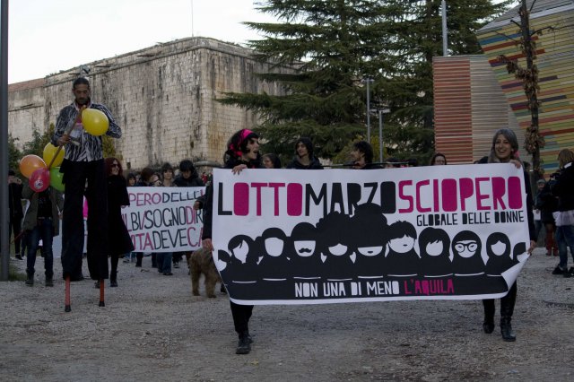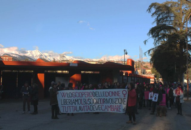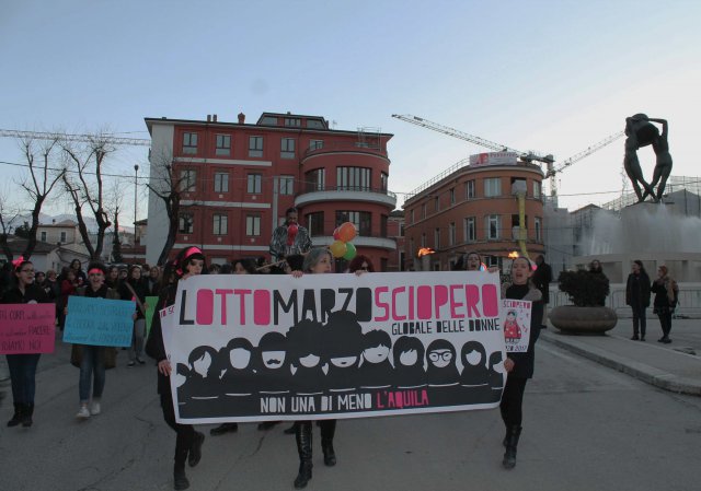 Nel capoluogo abruzzese, così come in altre città della regione e d'Italia, hanno sfilato in corteo alcune centinaia di persone, di cui la maggior parte ovviamente donne. Le rivendicazioni sono quelle della piattaforma nazionale, che lo scorso novembre a Roma ha visto manifestare migliaia di persone. Più autonomia, meno precariato esistenziale e lavorativo. E poi stop alla violenza, al linguaggio misogino e sessista, per una maggiore educazione alle differenze di genere. La manifestazione è seguita a numerose iniziative organizzate in città fin dal mattino.