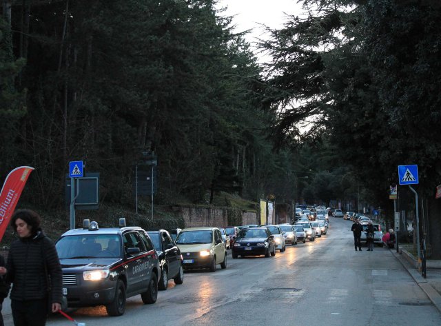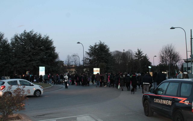 Stavolta, invece, lo corteo ha incrociato la trafficatissima rotonda dello stadio Fattori e si è addentrato su viale De Gasperi, la strada principale del quartiere Torrione, sulla quale si sono affacciate persone, dai balconi e dalle vetrine dei negozi. Scene normali in tutte le altre città, ma rare all'Aquila.