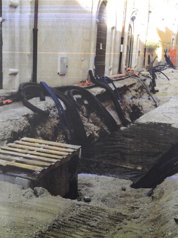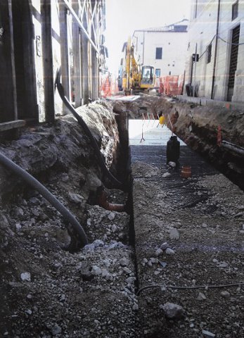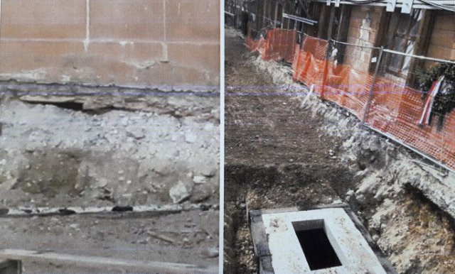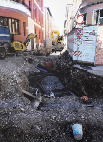 D'altra parte, il coordinatore della Scarl Gianni Frattale - in una intervista rilasciata al Notiziario della Ricostruzione [leggi qui] - spiegava come "gli scavi" dovessero eseguirsi "a blindaggio, una tecnica che serve proprio a tutelare - aveva spiegato - le fondamenta degli edifici". Frattale chiariva anche che "il tunnel" non sarebbe mai stato "a filo degli edifici, ma al centro strada". Di nuovo, le fotografie [in basso]mostrate da Corti sembrano 'raccontare' una storia diversa.
