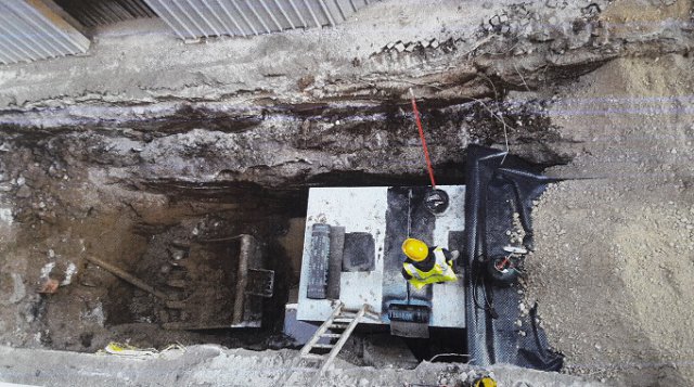 a 'blindaggio down a cassone' [immagine a destra], collegati da sbarre trasversali atte a tenerli in funzione. In particolare, in via Goriano Valli, in Via Sallustio, in Corso Vittorio Emanuele". Corti ha mostrato alcune foto che sembrano svelare, però, come i casseri a blindaggio non siano stati utilizzati [vedi foto in basso]. Tra l'altro, "il progetto prevedeva venissero estratti con estrema cautela, con il riempimento di un primo strato di massimo 50 centimetri fra i casseri stessi e l'elemento prefabbricato che costituisce il tunnel, e via così, fino al piano strada, a dire l'importanza che dovrebbero avere in termini di sicurezza".