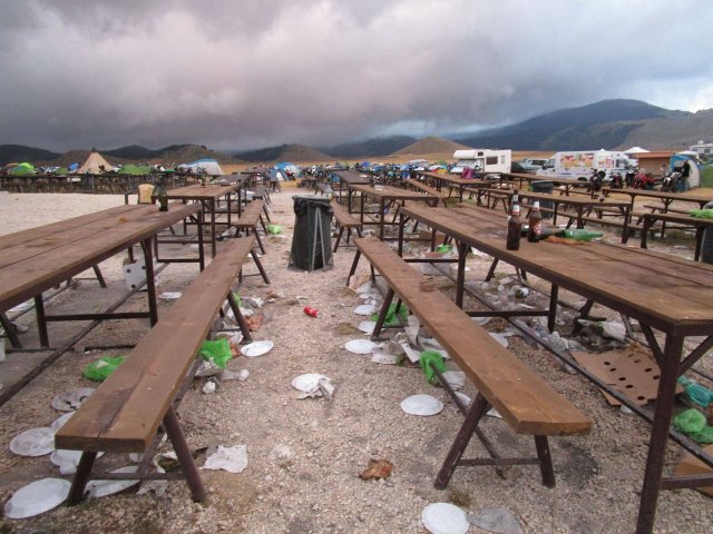 La mattina dopo di mattina presto ai visitatori si è presentata una scena degna di un film di Ciprì e Maresco, con rifiuti ovunque trasportati dal vento e alla mercè dei cavalli. Non vogliamo immaginare la gestione dei cosiddetti "bisogni" di tutte queste persone.