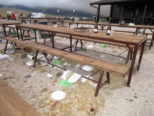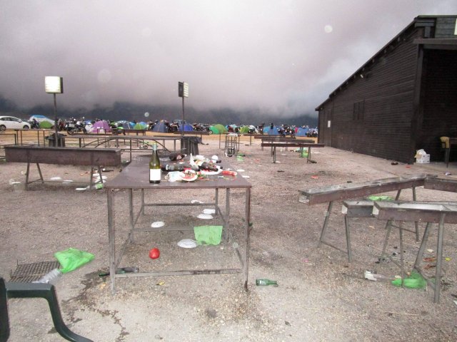 Come si vede dalle foto, l'area circostante a un famoso punto di ristoro situato sulla piana di Campo Imperatore è stata trasformata in un bivacco per motociclisti, che ha lasciato per terra rifiuti di ogni genere.