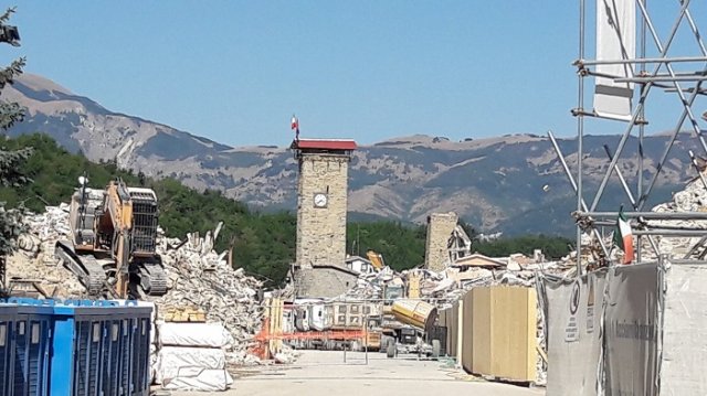 Ciò che era e ciò che sarà, almeno per i prossimi anni; in un fazzoletto di terra, il passato e il presente di Amatrice. "L'identità di un borgo è sempre dinamica, la storia non torna mai indietro: ricostruire vuol dire sempre andare avanti", ha detto il Vescovo Pompili, celebrando la Messa. Ed Amatrice sta provando ad andare avanti, allungando lo sguardo, però, oltre le macerie che celano la storia che fu, che non tornerà indietro certo, ma dovrà informare di sé i processi che verranno. Che dovranno venire.