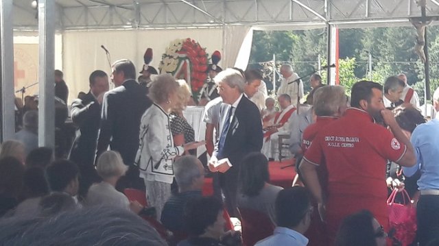 Alla funzione di stamane, ha presenziato anche il Presidente del Consiglio Paolo Gentiloni accompagnato dal Commissario Straordinario Vasco Errani, prossimo a lasciare l'incarico; entrambi sono sfilati via senza rilasciare dichiarazioni. Con loro, il governatore di Regione Lazio Nicola Zingaretti. "Sono stati consegnati già 511 appartamenti e saranno 615 entro la fine del mese. Stanno riaprendo le attività commerciali, sono tornati in funzione il supermercato e l'ufficio della ricostruzione. Abbiamo finito di togliere tutte le macerie con l'amianto e abbiamo riaperto le vie pubbliche e presto riapriremo anche corso Umberto, non appena la procura toglierà i sigilli", ha inteso sottolineare il Presidente della Regione ai microfoni dei giornalisti presenti, minimizzando sui ritardi nella rimozione delle macerie e nella consegna delle casette provvisorie.