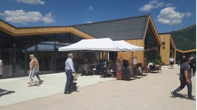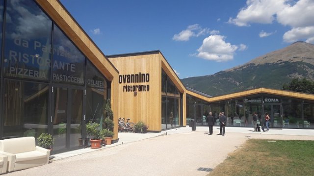 Ancora qualche metro, e un cartello provvisorio come la realtà che vive Amatrice indica che, a destra, si trovano dei ristoranti: l'archistar Stefano Boeri l'ha definita area food, sulla piazzetta verde insistono 5 attività di ristorazioni - e tra le altre, la cucina dell'Hotel Roma - in attesa che ne arrivino altre. Impossibile trovare un posto a sedere, se non si è prenotato per tempo: all'ingresso del 'Castagneto' c'è persino una lista d'attesa compilata a penna, tanto lunga da spingere a cercare altrove.