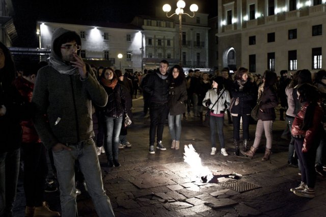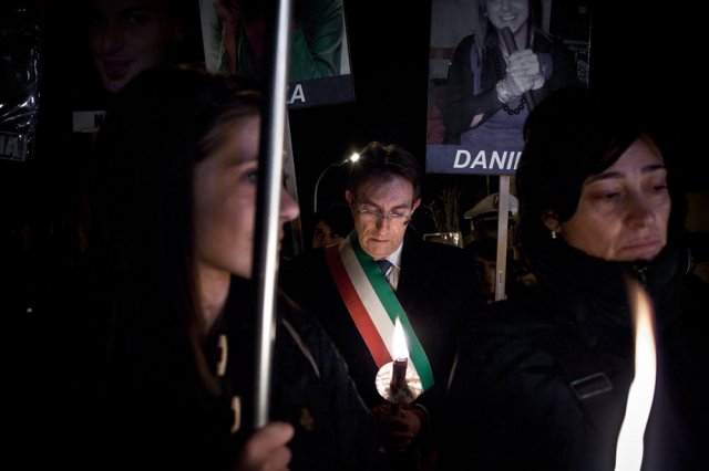 Le fiammelle si sono accese in anticipo, alle 22. In silenzio, più di diecimila persone hanno attraversato il cuore della città. In testa al corteo i familiari delle vittime e i parenti dei ragazzi morti sotto le macerie della Casa dello Studente. Subito dietro il sindaco, Massimo Cialente, la senatrice Stefania Pezzopane, il ministro per la Coesione territoriale, Fabrizio Barca, il presidente della Provincia, Antonio Del Corvo, il presidente della Giunta regionale, Gianni Chiodi, e alcuni deputati del Movimento 5 Stelle.
