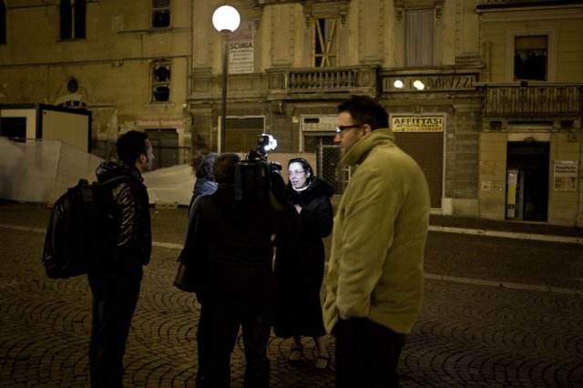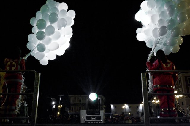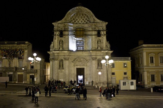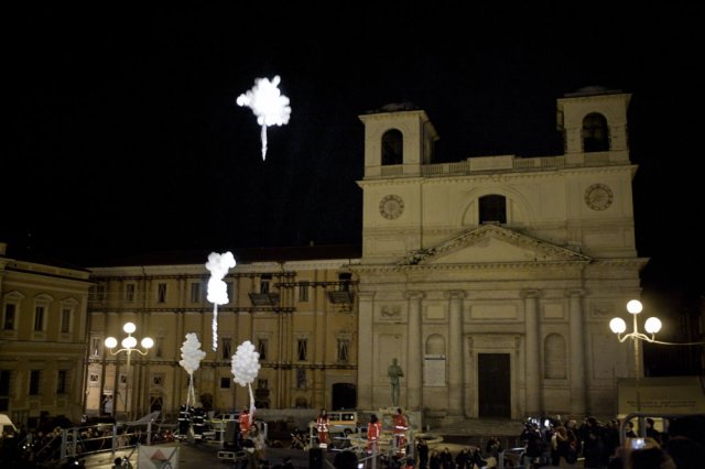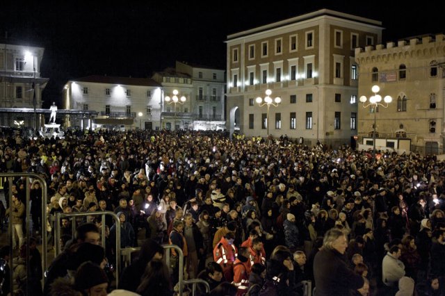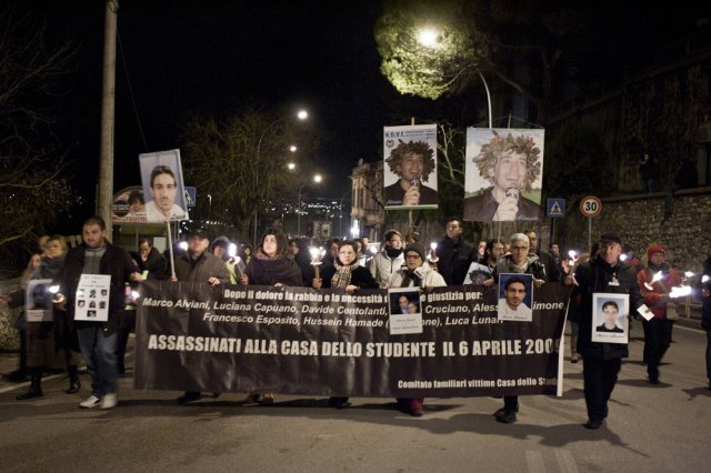 Il corteo si è mosso silenzioso tra le macerie di via XX Settembre fino alla Casa dello Studente. Qualche minuto di lacrime e preghiere e, a mezzanotte, l’arrivo in piazza Duomo, con la lettura dei 309 nomi delle vittime del terremoto. Minuti interminabili, prima che si liberassero in aria dei palloncini bianchi.