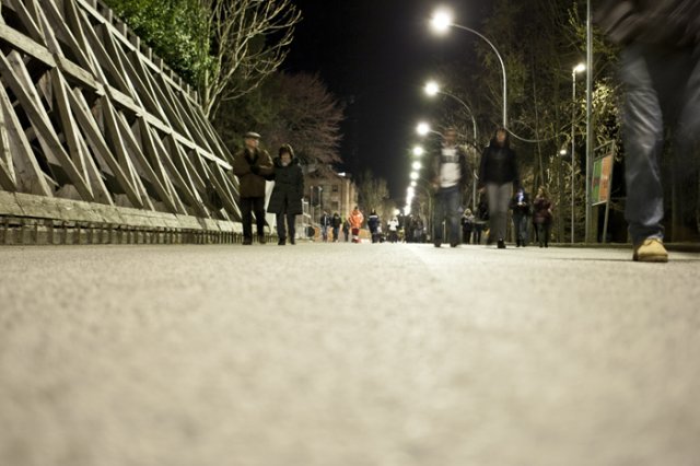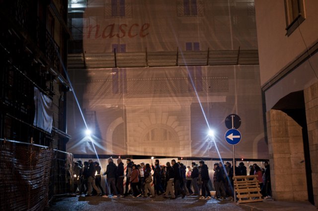 Migliaia i partecipanti, di tutte le generazioni, che hanno sfilato a partire dalle 22.30 lungo via XX Settembre, tra le più colpite del terremoto, e che porta ancora intatti i segni di quella notte.