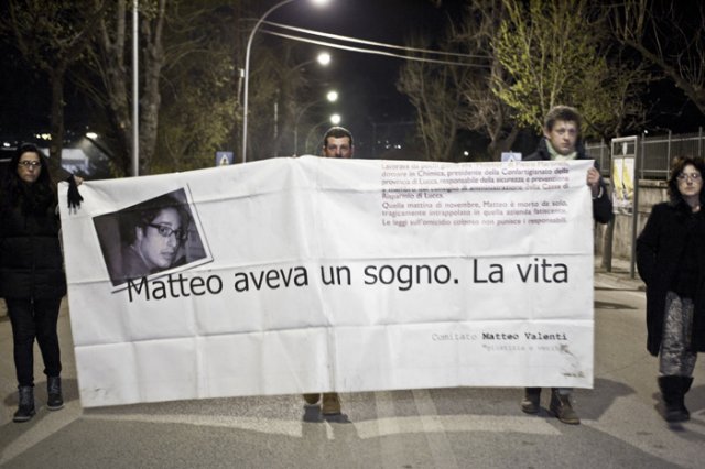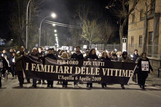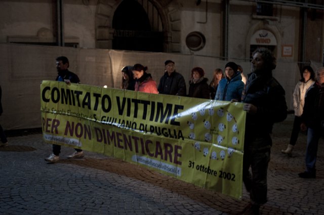 Presenti al corteo, oltre a tutte le autorità cittadine e al sottosegretario all'economia Giovanni Legnini, anche i familiari delle vittime della strage di Viareggio (sempre del 2009) e di quelli della scuola di San Giuliano di Puglia, crollata in seguito al terremoto del Molise nel 2002.