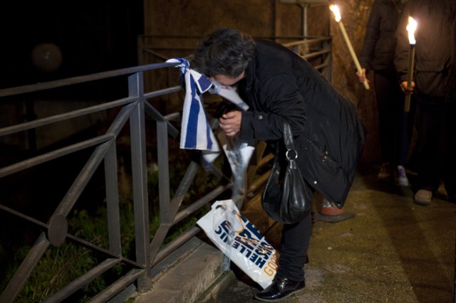 La commozione ha toccato i momenti più forti davanti la Casa dello studente e gli altri civici in cui si verificarono decine di morti. E proprio all'altezza di via Campo di Fossa la mamma di Vassilis Koufolias, vittima greca di quel 6 aprile, ha posto la bandiera del Paese ellenico su una ringhiera, dopo aver chiamato più volte il nome del figlio scomparso.