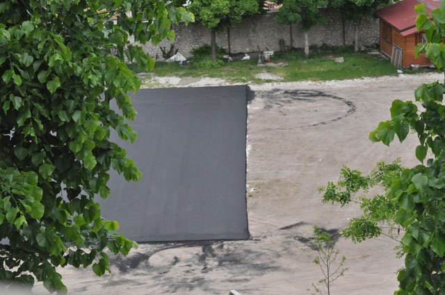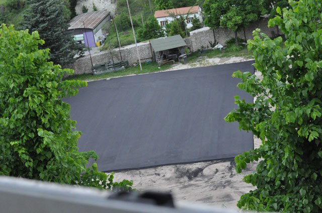 Sta facendo molto discutere la striscia di asfalto spuntata, un paio di giorni fa, su quello che è stato, fino al terremoto del 2009, il campo da calcio della Polisportiva Oratoriana.