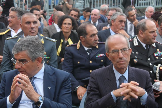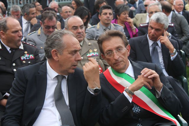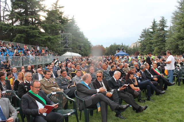 Tra le autorità presenti nel corteo (oltre naturalmente al sindaco Cialente e alla delegazione del consiglio comunale), il sottosegretario all'Economia Giovanni Legnini; il presidente della Regione, Luciano D'Alfonso, e quello della provincia dell'Aquila, Antonio Del Corvo; l'ex sottosegretario alla Presidenza del Consiglio Gianni Letta; il prefetto dell'Aquila Francesco Alecci; la senatrice del Pd Stefania Pezzopane.