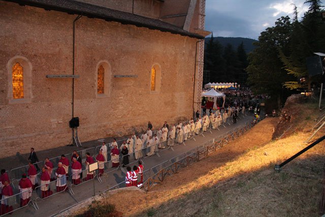 Quest'anno (altra novità) la teca con la salma di Celestino V non è stata portata in corteo ma è stata sistemata sul sagrato della chiesa, dove è rimasta per tutta la durata del rito religioso.