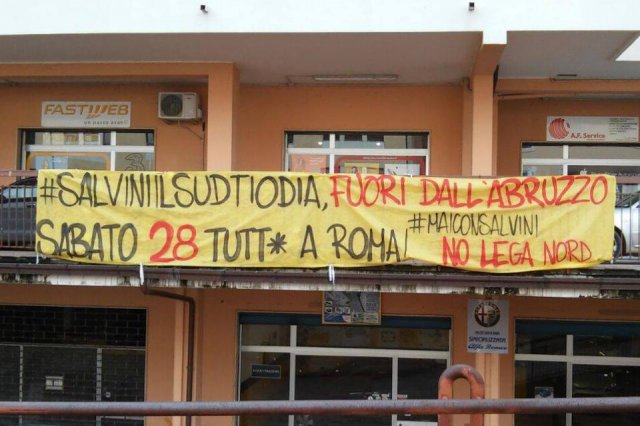 "Che sei venuto a fare all'Aquila, non ti vogliamo, agli aquilani non piacciono i leghisti!" hanno urlato alcuni cittadini al leader del Carroccio, in Abruzzo per presentare il movimento "Noi con Salvini" - il simbolo con cui la "nuova" Lega del dopo Bossi-Calderoli-Maroni è sbarcata e mira a radicarsi nel Sud Italia - in un mini tour che ha fatto tappa, oltre che all'Aquila, anche a Avezzano, Roseto, Pescara e Montesilvano.