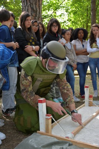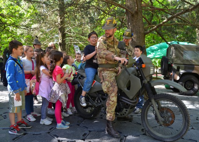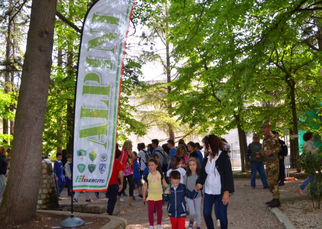 Centinaia di bambini hanno affollato oggi la Cittadella degli Alpini, lo spazio dove sono messi in mostra equipaggiamenti e mezzi in dotazione alle Truppe Alpine dell’Esercito.