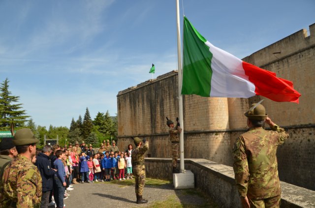 Dopo l’alzabandiera e l’inno nazionale cantato insieme agli Alpini del 9° reggimento, i giovani ospiti hanno visitato i numerosi stand dedicati alle missioni internazionali, ai veicoli blindati e alla storia del Corpo.