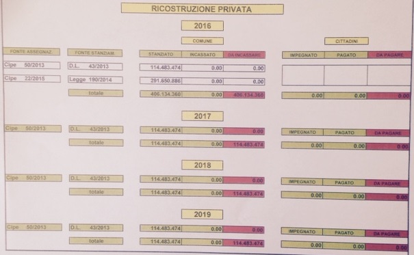 Dunque, il Comune dell'Aquila ha impegnato 652milioni e 303mila euro, già pagato 487milioni e 303mila euro, in attesa dei 165milioni ancora da versare sui conti correnti dedicati dei cittadini.