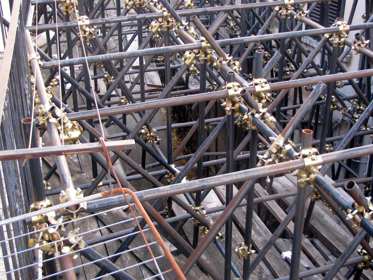 Come è possibile vedere dalle foto, a causa del passaggio di alcuni mezzi fuori misura, il puntellamento è stato "scoperchiato" da alcune delle barre di legno che fanno da tetto alla struttura.