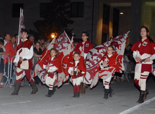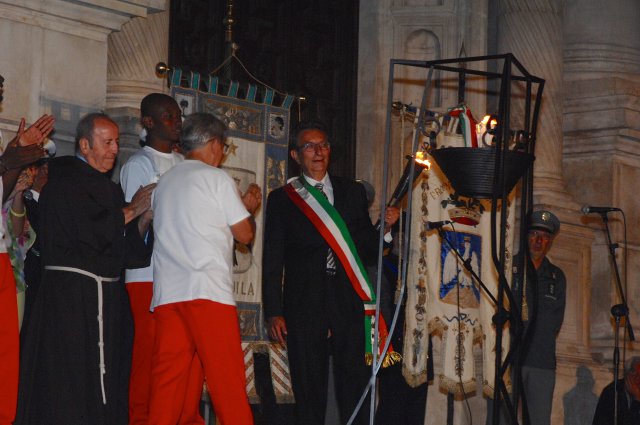Il momento clou ha visto come di consueto i tedofori con la fiaccola, che viaggia come noto nella settimana precedente al 23 agosto, proveniente dal Monte Morrone.