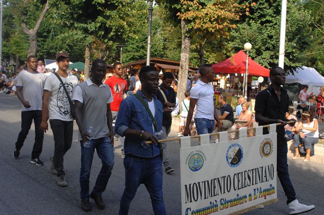 Hanno sfilato anche i migranti, ospiti della Mensa della Mensa di Celestino: d'altra parte, l'integrazione è uno dei grandi temi della Perdonanza. Non sono mancati i momenti di protesta. In particolare, le 'Mamme per L'Aquila' hanno inteso manifestare il disappunto per la situazione della ricostruzione delle scuole aquilane e per la paventata chiusura di due asili nido cittadini.