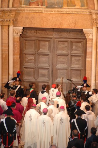 Subito dopo la lettura della Bolla e la messa, poi, il cardinale Stella ha officiato il rito della Porta Santa, che rimarrà aperta fino ai vespri di domani.