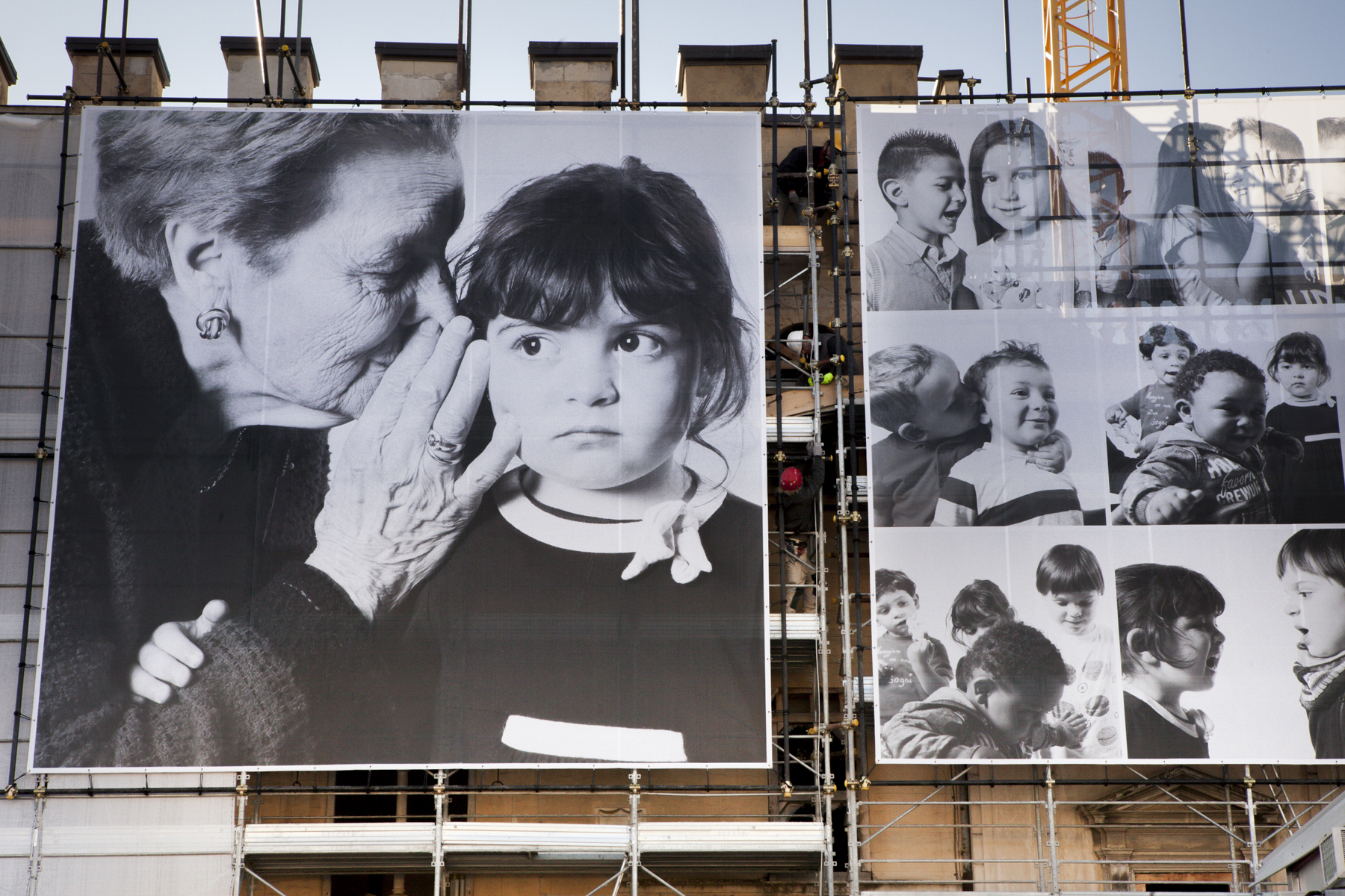 Questa l'immagine, commovente, installata in questi giorno dal Progetto di arte pubblica Off Site Art che vuole essere anche un augurio di vitale creatività per il 2016. Qualcosa di caldo e presente tra i ponteggi metallici che sigillano i palazzi in ricostruzione nel Centro storico: "E' un tempo circolare che parla di memoria intergenerazionale - scrivono le orgnaizzatrici in una nota - l'immota manet che mantiene viva l'anima della città in ricostruzione".