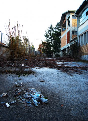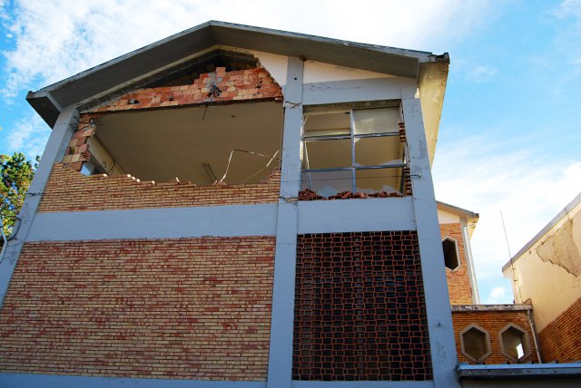 Come spesso accade però, resta un grande edificio nella periferia aquilana, a ricordarci i nostri errori. Vetri rotti, mattoni caduti, pareti crollate: il complesso, fortemente lesionato dal sisma, appare fermo nel tempo, circondato da rifiuti di ogni tipo, tra cui materassi, frigoriferi e motorini. Parti della struttura cominciano a cedere, a causa dell’azione erosiva degli agenti atmosferici, mentre la natura sembra si stia lentamente riprendendo ciò che gli spetta.