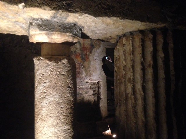Attorno alla tomba del martire, si è sviluppato il cimitero sotterraneo, costituito da un lungo corridorio d'accesso che immette in un'ampia galleria e da sei ambienti, tre dei quali con pianta regolare e rivestiti, gli altri scavati invece nella roccia.