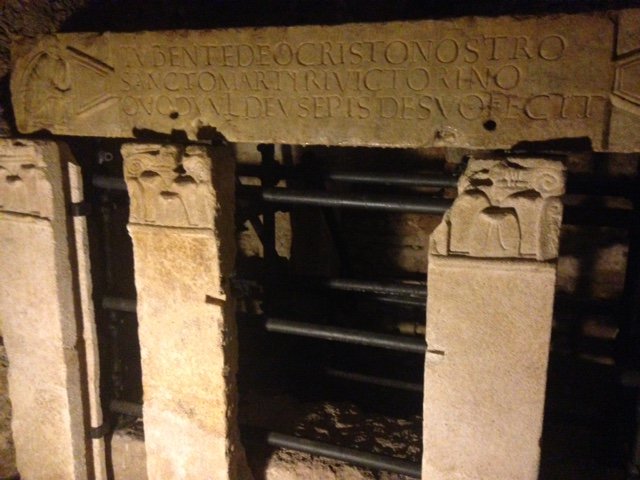 La catacomba è strettamente connessa all’antica città di Amiternum, conquistata dai romani all'inizio del III secolo avanti Cristo. Si ritiene che qui fu sepolto il martire Vittorino. La lunga incisione in latino cristiano su una lastra di marmo sembra non lasciare dubbi: “Sancto martyri Victorini”.