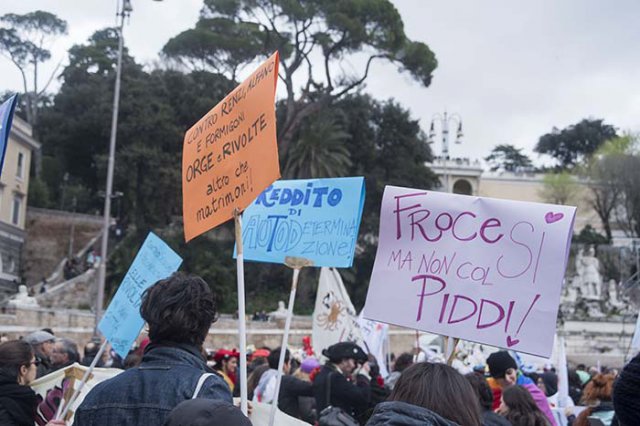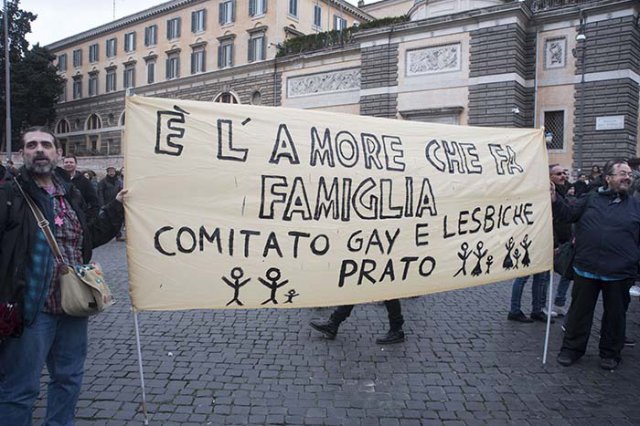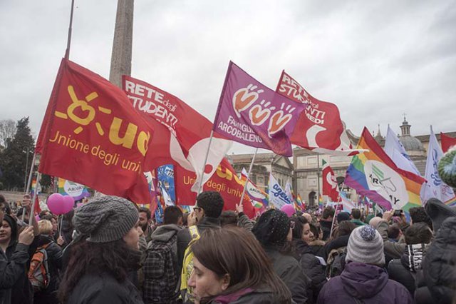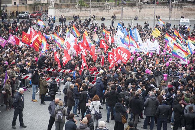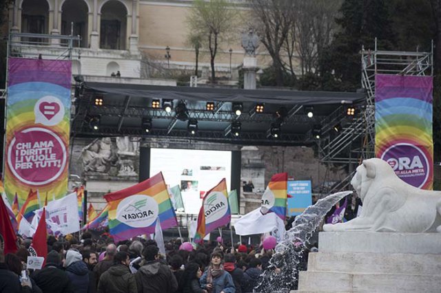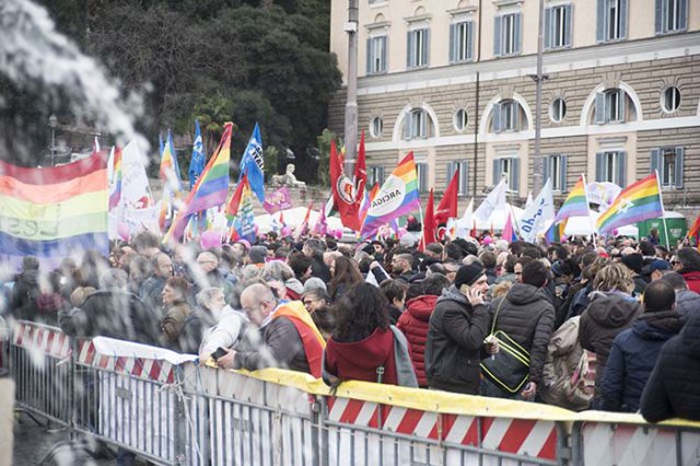 Una piazza coloratissima per ribadire il sì ai diritti per le persone omosessuali e per sottolineare come la battaglia per le unioni civili non si sia esaurita con il "compromesso al ribasso" del ddl Cirinnà.
