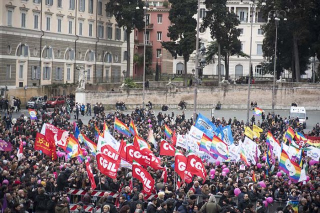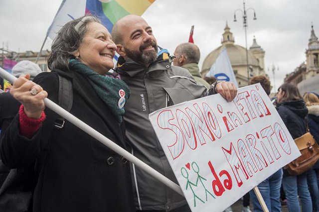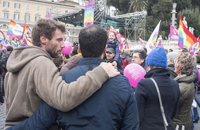 Nel pomeriggio diversi i volti noti avvistati in piazza del Popolo: da Paola Turci ad Emma Marrone, passando per il video messaggio dell'attrice Claudia Gerini. Pochissimi i personaggi politici presenti, tra cui è spiccata la segretaria della Cgil Susanna Camusso, intervenuta sul palco. Come prevedibile, il clima della piazza è stato a metà tra la rabbia per i dietrofront sul Cirinnà e la festa per un primo importante passo verso l’eguaglianza dei diritti. (m. fo.)