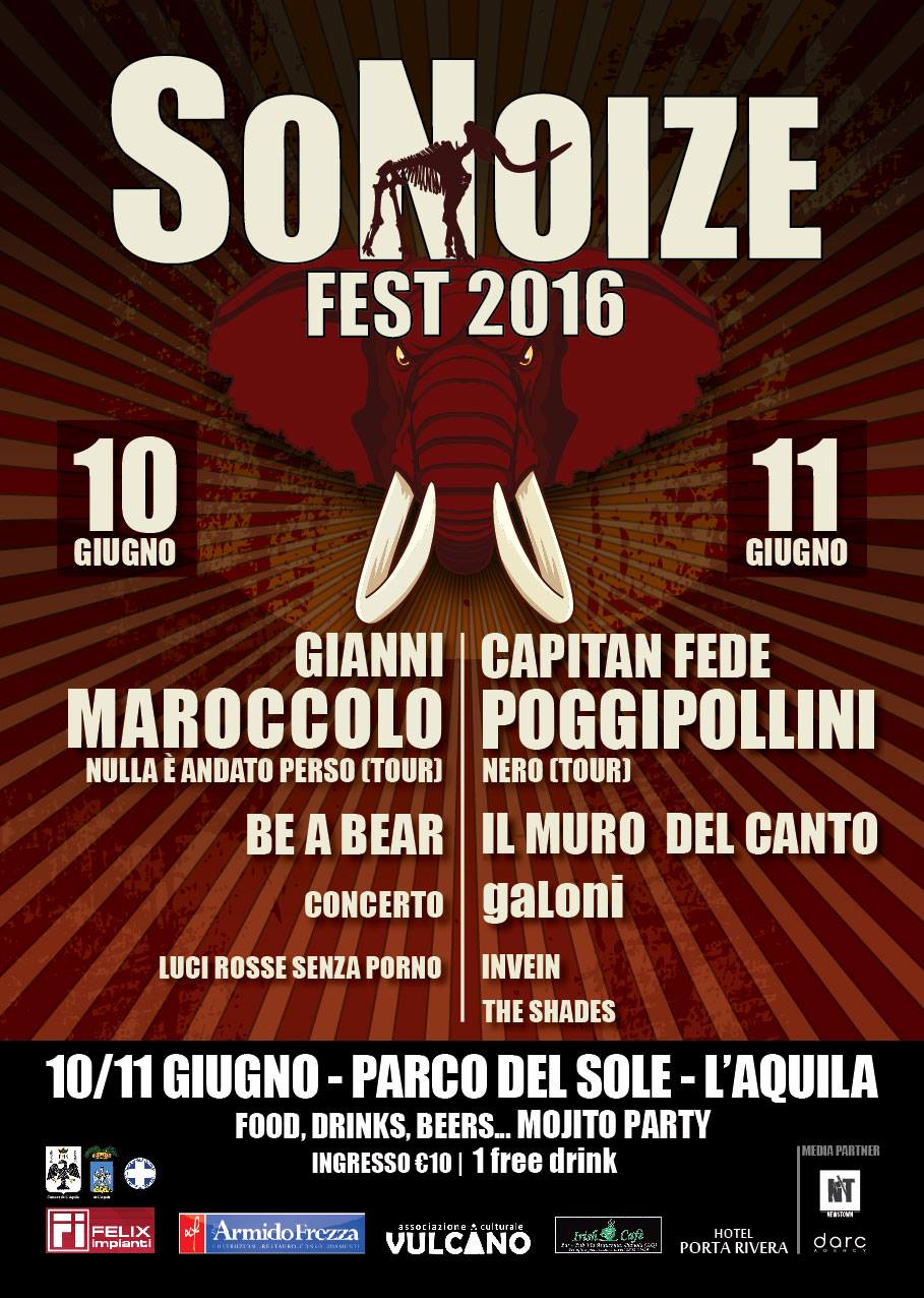 Due giorni di musica di altissimo livello nella splendida cornice del Parco del Sole dell'Aquila. E' la terza edizione del SoNoize Fest, festival musicale organizzato dall'associazione culturale Vulcano, da anni attiva sul territorio nella promozione di artisti emergenti e già affermati sul panorama nazionale.
