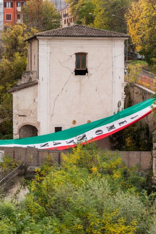 "Oltretutto la chiesa, all'interno - ha sottolineato Cesare Ianni, portavoce del Gruppo - è uno dei più bei esempi di barocco in città. Va salvaguardata assolutamente. Perciò l'abbiamo idealmente avvolta con il nostro tricolore lungo 25 metri, simbolo della rinascita del post sisma aquilano!".