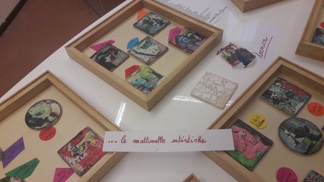 Se potete, vi consigliamo di visitarla: le opere realizzate da bambine e bambini della 'De Amicis' sono sorprendenti e l'ultima bacheca della mostra svela i capolavori dei piccini trasformati in mattonelle con la tecnica del découpage.