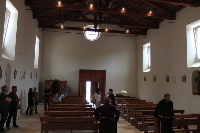 La prima fase di consolidamento e restauro (finanziata per circa 400 mila euro con fondi Cipe) è stata completata a maggio del 2014 ed ha interessato la parte strutturale e l’esterno dell’edificio, facendo tornare visibile uno dei gioielli della città medievale, la bella facciata della Chiesa, riconoscibile proprio dalla meridiana, per il cui restauro sono stati riutilizzati gli stessi elementi recuperati dal crollo, salvo alcune parti mancanti che sono state integrate.