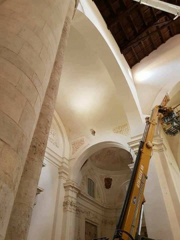 Ovviamente, anche dal punto di vista del restauro si è lavorato - sin nei minimi dettagli - nel recupero degli elementi di pietra, decorativi, nelle finiture e negli arredi. "Ci sono punti oltre i quali non si può andare: ci sono parti definitivamente perse che non è stato possibile ricomporre; in quei casi, l'approccio è stato di provarci fin dove è stato possibile, di riproporre fin dove c'erano elementi corretti per farlo, e altrimenti prendere atto del limite oltre il quale la reinterpretazione non è né culturalmente né scientificamente accettabile ricomponendo così, nella forma più neutra e compatibile possibile, gli elementi di raccordo. Sono stati eliminati anche elementi incongrui, per lo più danneggiati dal terremoto, forse inadeguati già in sede di costruzione, che non erano più in grado di garantire stabilità: parlo dei pilastri della navata, ad esempio, laddove alcuni pezzi non in grado di garantire resistenza sono stati sostituiti".