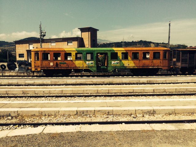 #comeuntreno faticosamente si è allontanato da Sant’Eusanio del Sangro dove Marisa, Romano e Silvia hanno accolto i pedalatori con ogni genere di conforto. Riprendere le rotaie è stato un atto di volontà assai arduo, sostenuto però da missione da compiere, tenuta segreta fino ad oggi, cioè quella di portare a destinazione un messaggio: “Sulla strada sbagliata con il mezzo giusto o sulla strada giusta con il mezzo sbagliato? Dal mare alla montagna: l’in-sostenibile leggerezza della mobilità abruzzese…”. Così recita lo striscione, consegnato dal gruppo di “Zona 22” di San Vito Chietino alla coppia all’inizio dell’avventura e che è stato steso sull’arrugginito vagone di quello che fu il “treno della valle”, arenato nella stazione di Piane d’Archi.